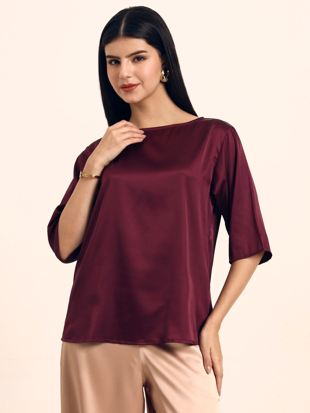 Satin Wide Leg Pants European Fabric Plum Wine Glam Look