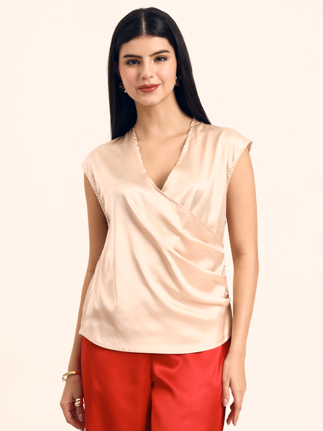 Satin Wide Leg Pants European Fabric Rose Sand Glam Look