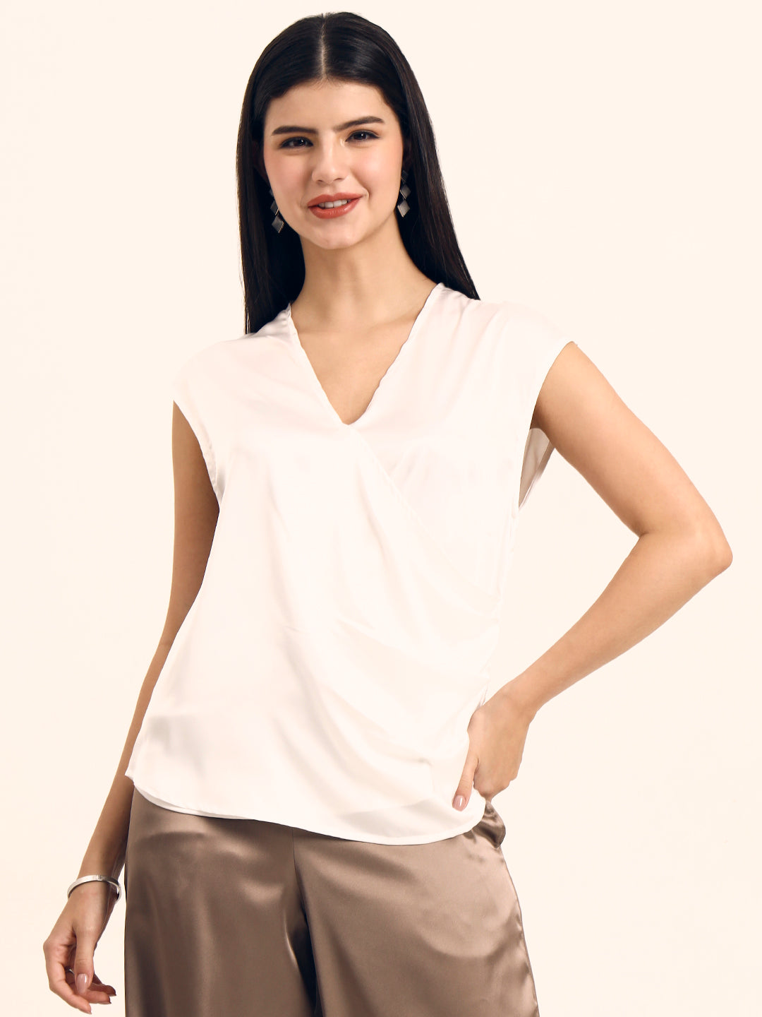 Women's Luxury European Satin V Neck Pleated Sleeveless Top