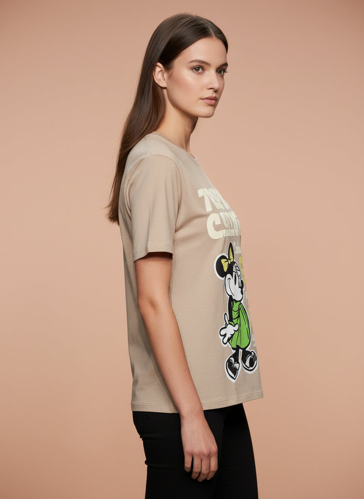 Beige Tropical Minnie Mouse Oversized T-Shirt