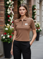 Brown Zip-Up Ribbed Polo T-Shirt for Women