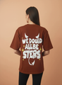 Elevate your everyday casual style with this rich chocolate brown graphic t-shirt. Featuring a cool white “We Are All Stars” print with star accents on the chest, this tee offers a perfect mix of comfort and attitude.