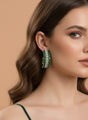 Upgrade your jewelry collection with these stunning green and silver hoop earrings, beautifully adorned with premium Cubic Zirconia (CZ) stones for a brilliant, diamond-like sparkle. The rich green stones combined with shimmering white CZ accents create a luxurious and eye-catching design that enhances any outfit effortlessly.