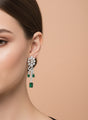 Luxury Silver-Tone Cubic Zirconia Floral Drop Necklace & Emerald Dangle Earrings Set