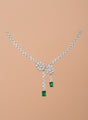 Add a touch of refined elegance to your look with this beautifully crafted Silver-Tone Cubic Zirconia Jewelry Set. Designed with a delicate floral motif, the necklace features sparkling CZ stones arranged in a graceful pattern, finished with stylish drop chains and rich emerald-green accents that enhance its luxurious appeal.