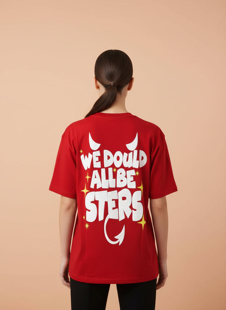 Red We Could All Be Stars Graphic Oversized T-Shirt for Women
