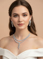 Elevate your bridal or evening look with our Luxury White Cubic Zirconia Necklace & Earrings Set. This exquisite matching jewelry set delivers full diamond-like brilliance with premium white cubic zirconia stones.