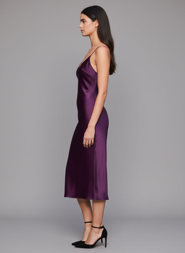 Elevate your wardrobe with this Luxury Satin Slip Dress in an elegant Deep Plum shade. Crafted from ultra-soft, premium satin, it offers a smooth, glossy finish that drapes beautifully on the body. The lightweight fabric feels gentle on the skin, making it perfect for all-day comfort.