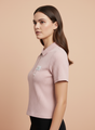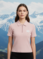 Women’s Pastel Pink Ribbed Knit Quarter Zip Polo T-Shirt