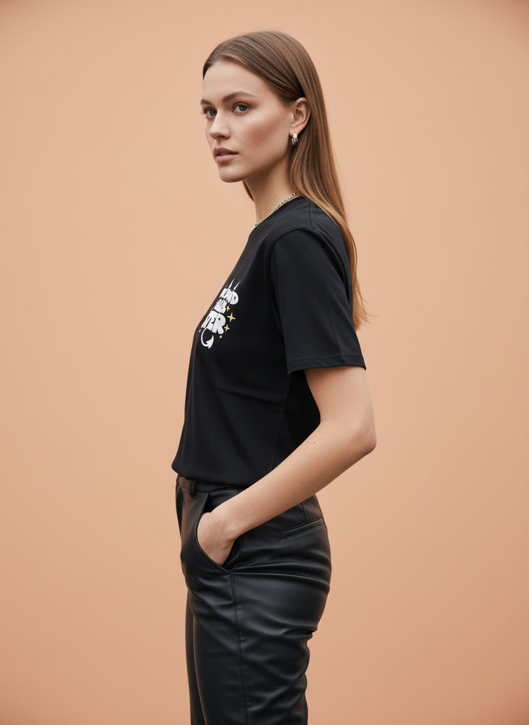 This t-shirt gives perfect mix of edgy and cute vibes – ideal for daily wear, casual outings, college, or hanging out with friends.