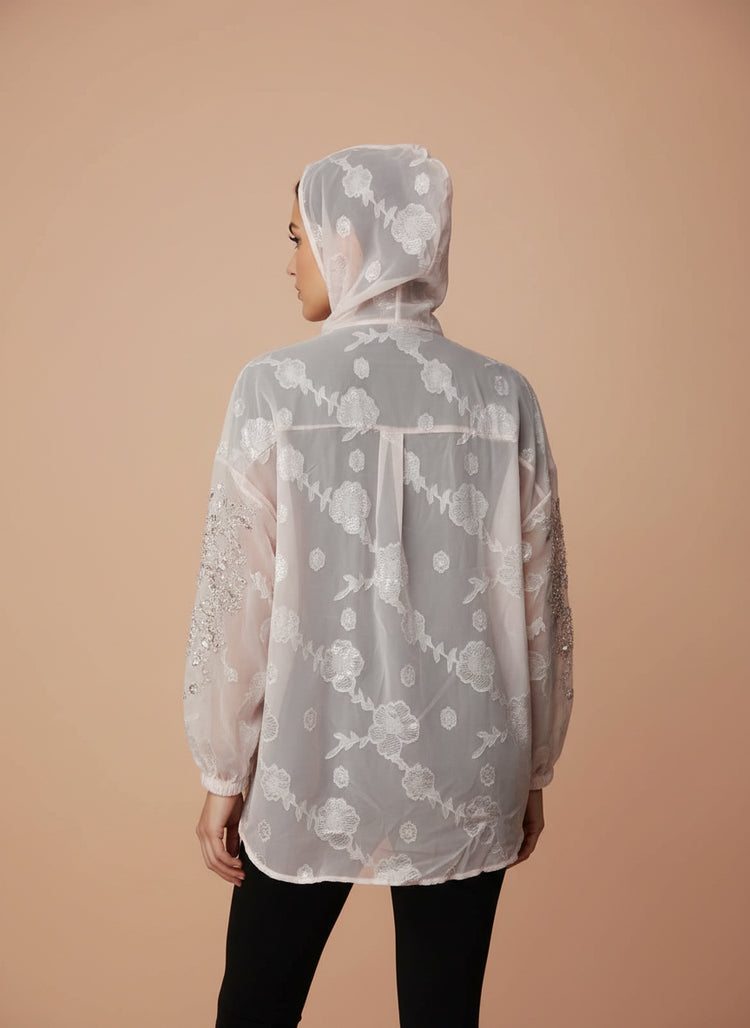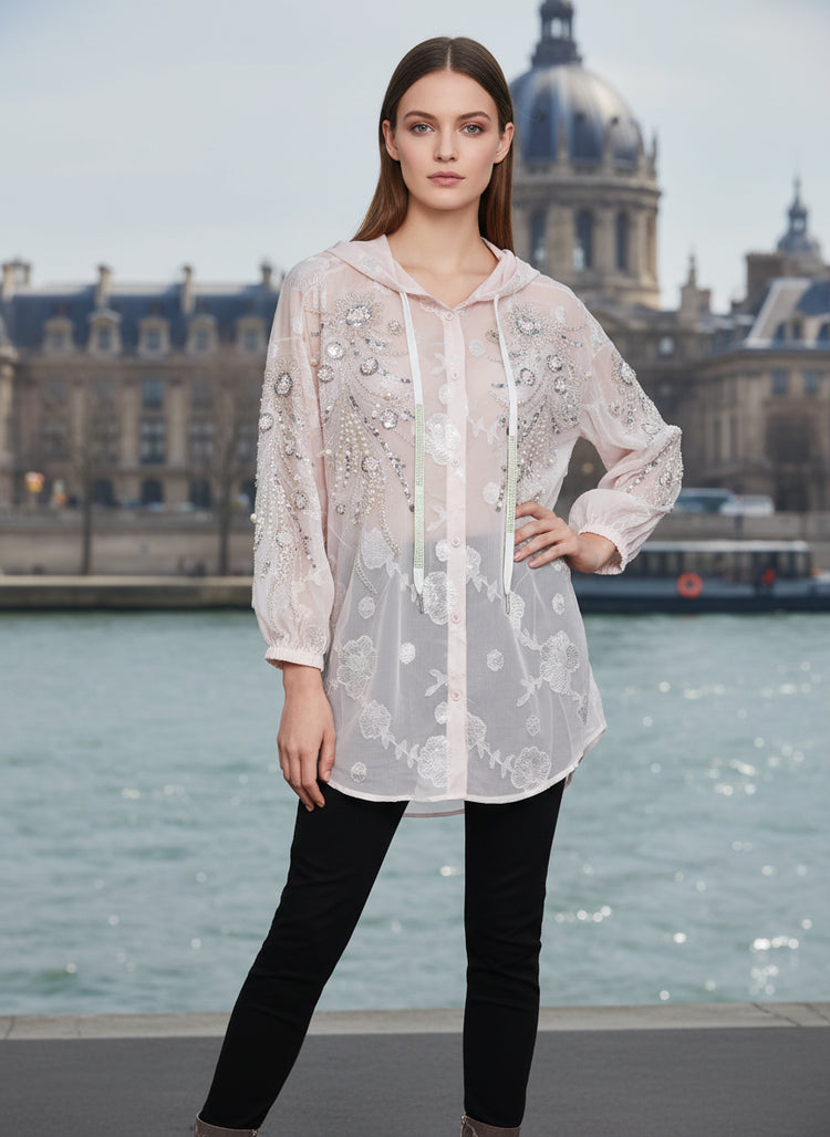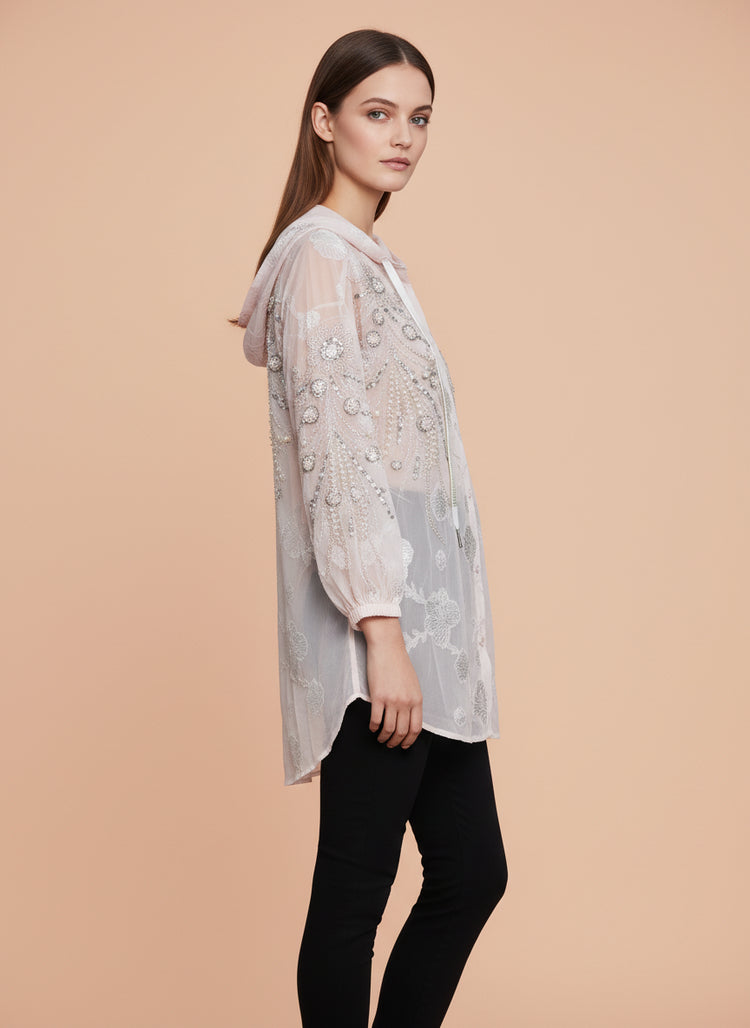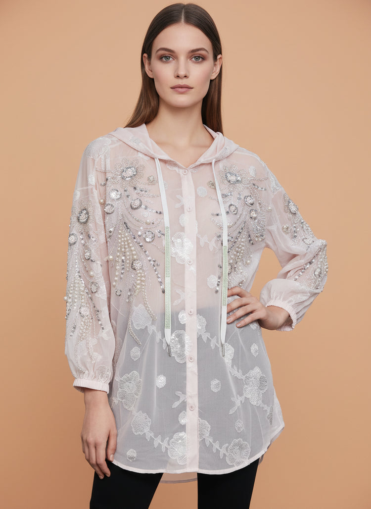 Sheer Embroidered Women’s Hooded Top