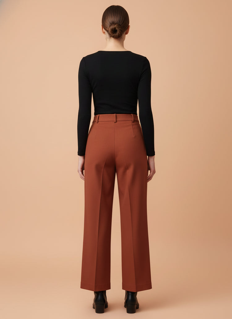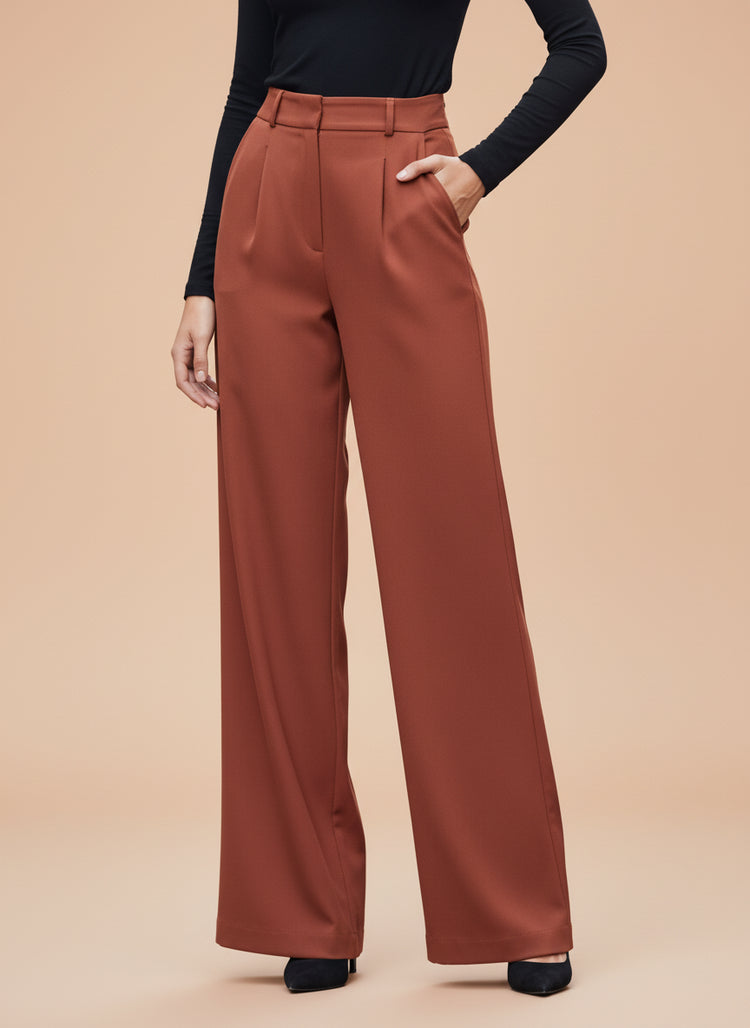 trousers offer a flattering high-waisted fit that cinches the waist and elongates the legs,
