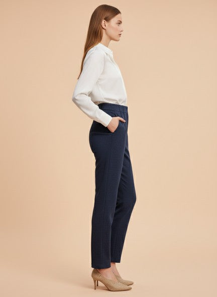 Banana Crepe Navy Skin Fit With Multi Pleated Trouser
