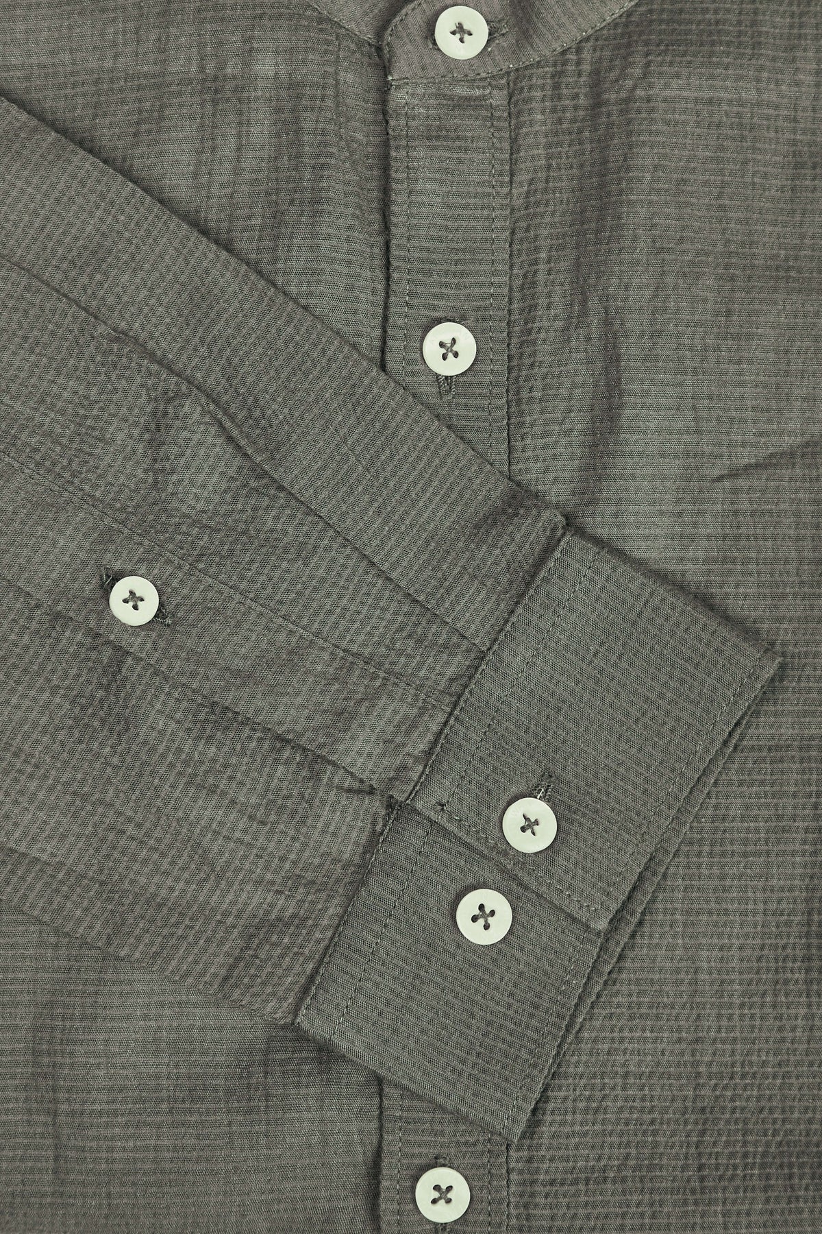 Amswan Premium Men'S Grey Crinkle Cotton Shirt - Mandarin Collar, Long Sleeves