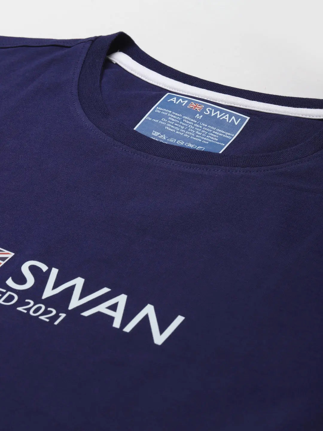 A style treat for you with this T-shirt. It provides you with ample comfort while being on the move. While at the gym or hanging out with friends, pair this tee with our track pants or shorts for a relaxed vibe. Enjoy a carefree run in this T-shirt with the Am Swan logo. FEATURES Active T-shirt for your daily workouts Style: Crew Neck Sleeves: Short sleeves Color: Navy, white and red COMPOSITION & CARE Material: 97% combed cotton, 3% lycra, 170 GSM Wash: Machine Wash Do not bleach Do not dry clean
