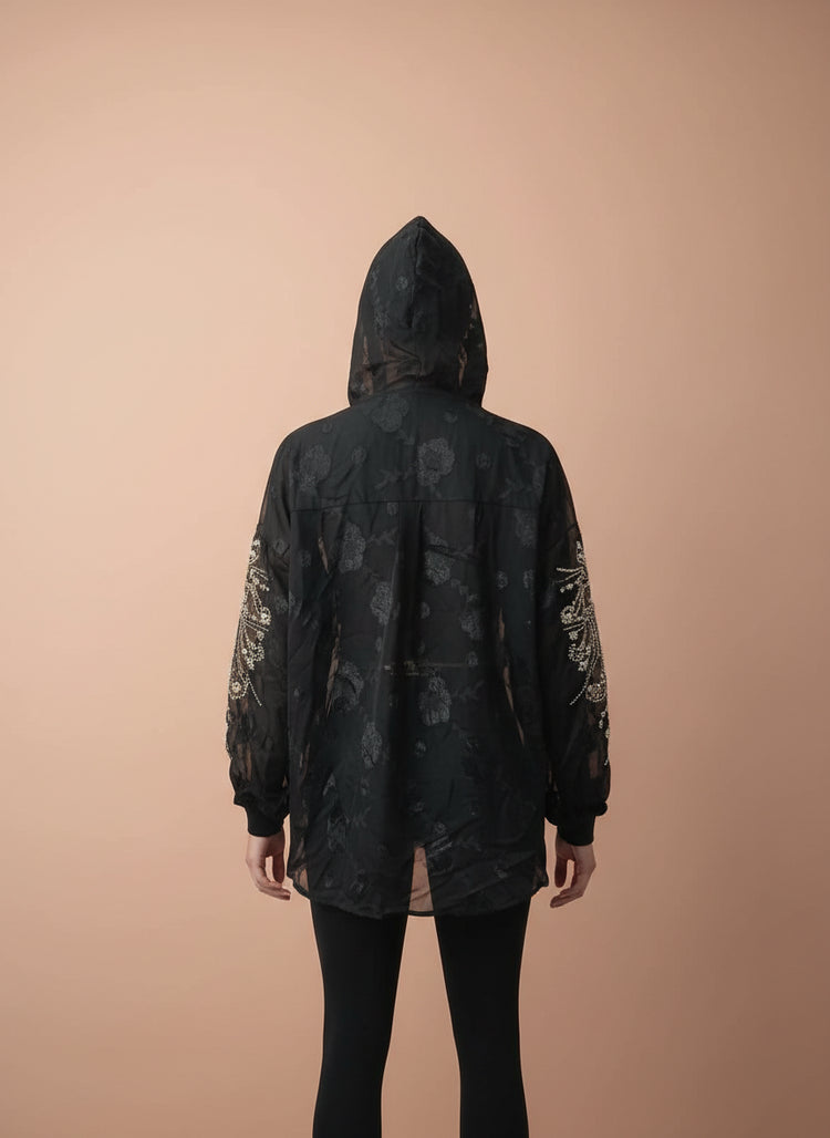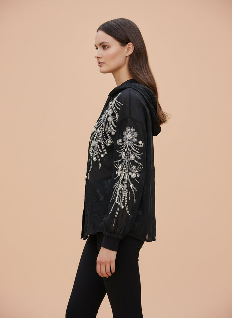 Sheer Embroidered Women’s Hooded Top