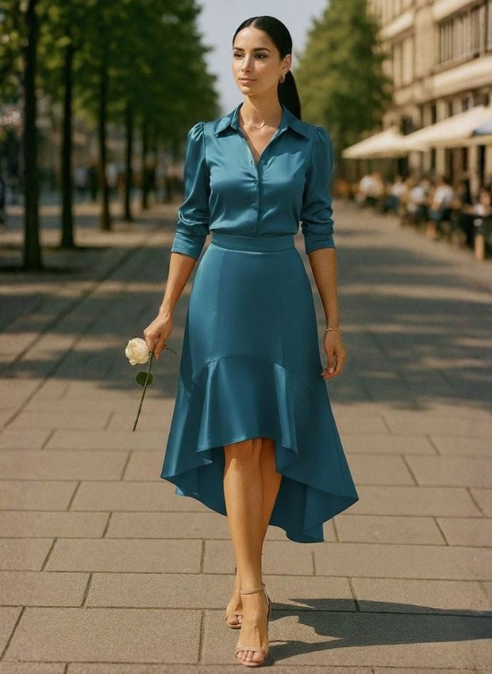 European Satin A Symetrical Shirt Top