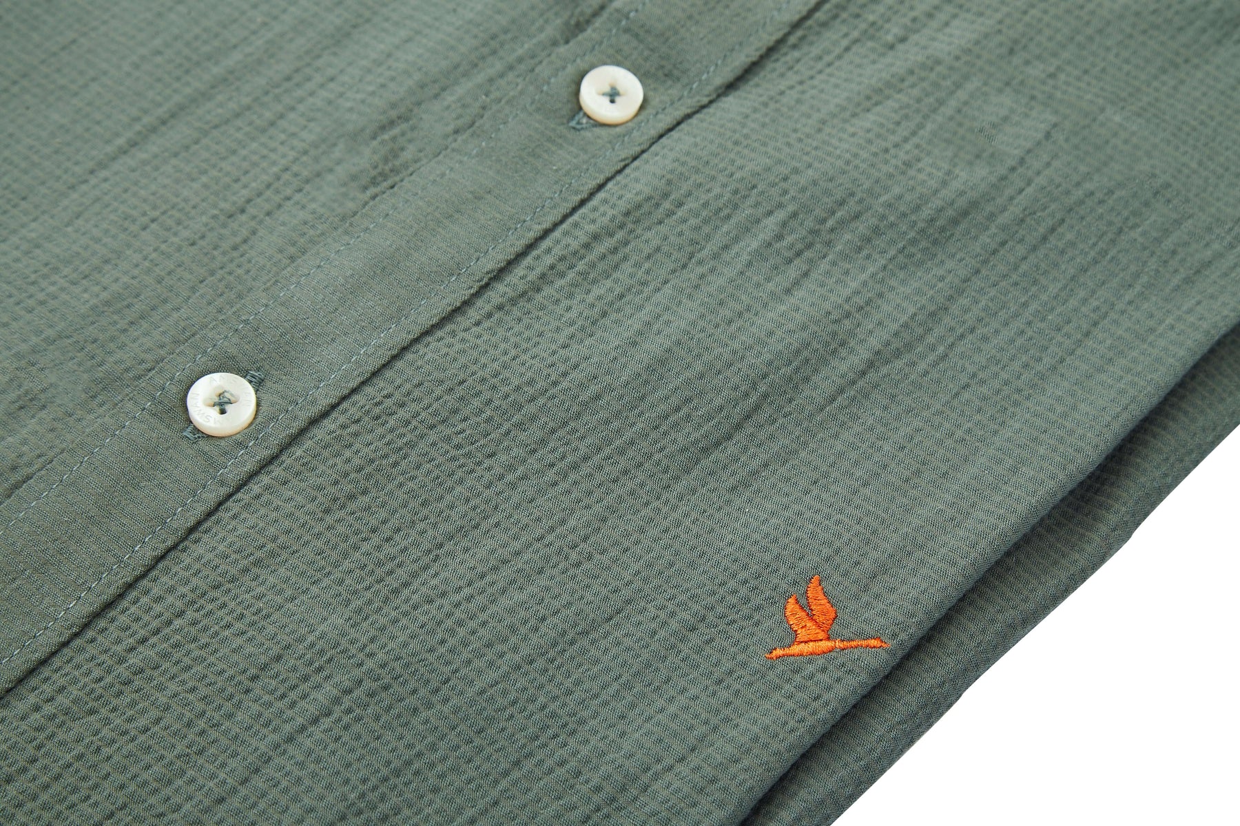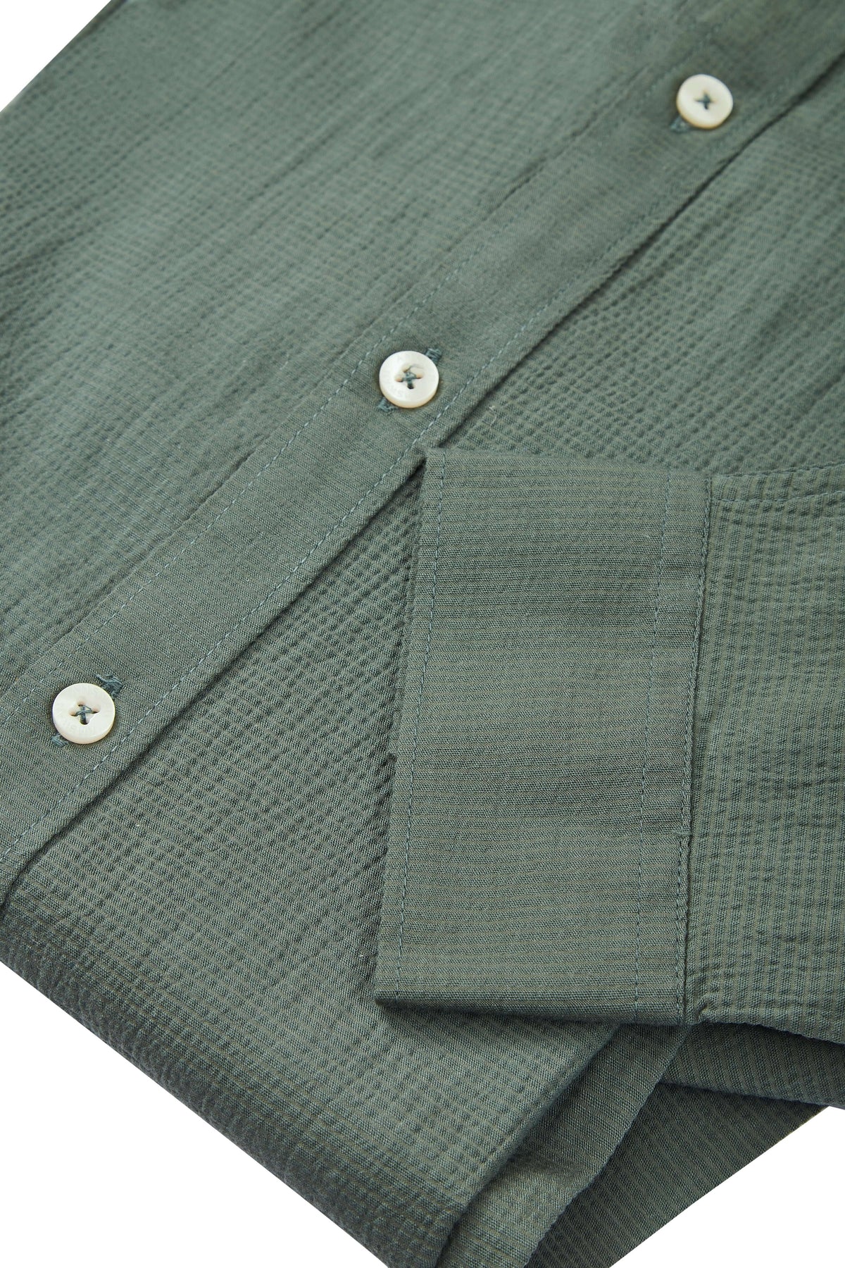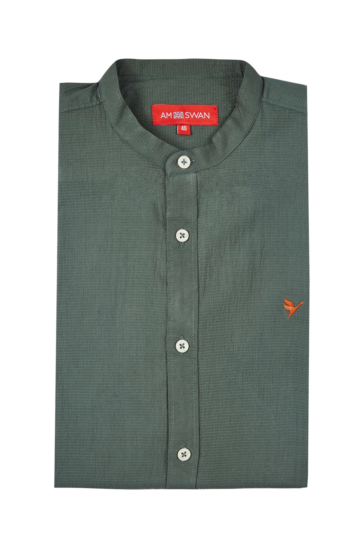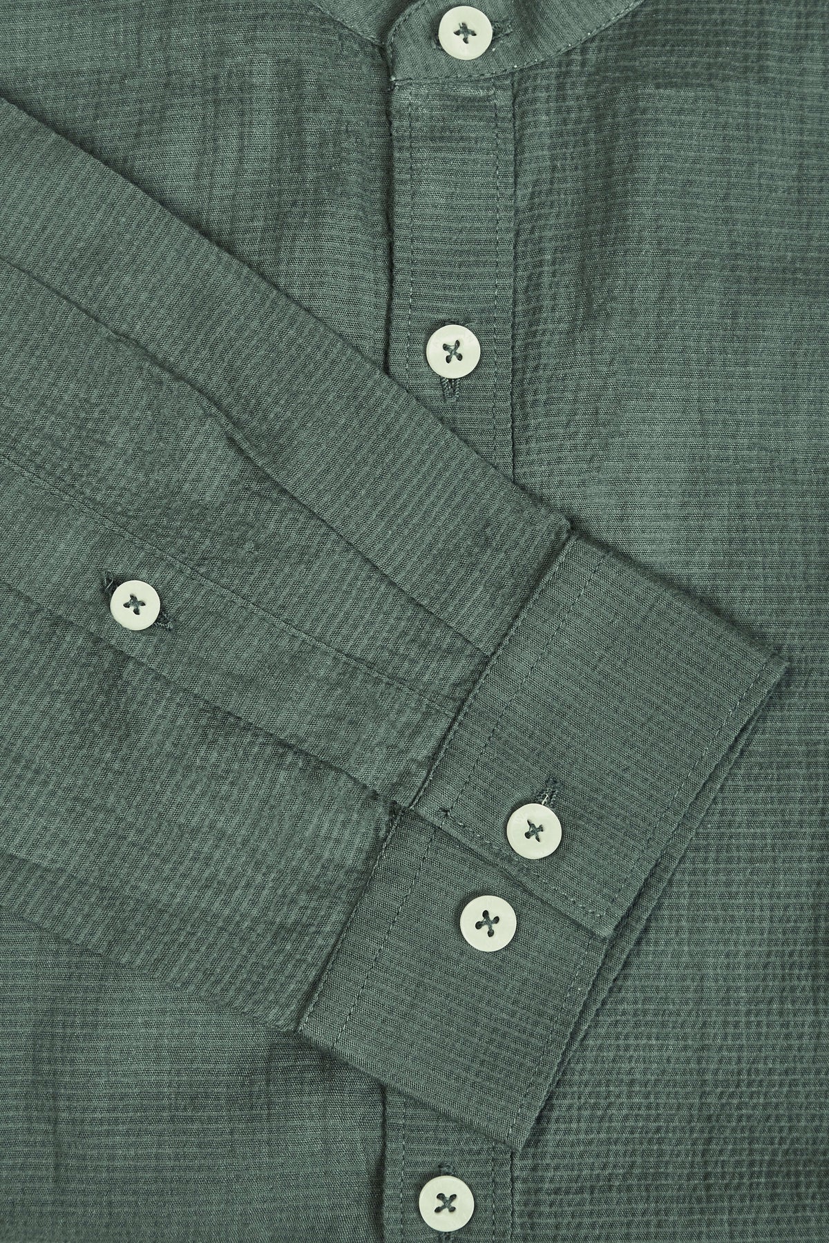 Amswan Premium Men'S Green Crinkle Cotton Shirt - Mandarin Collar, Long Sleeves